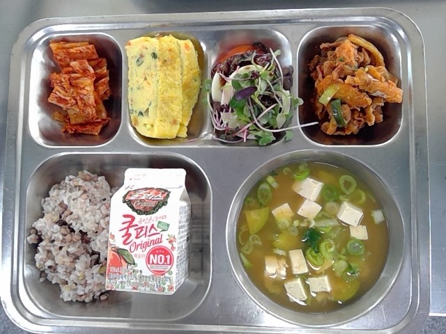 혼합잡곡밥/미더덕된장국/돼지황태불고기/야채달걀말이/배추김치/카프레제샐러드/쁘띠클주스